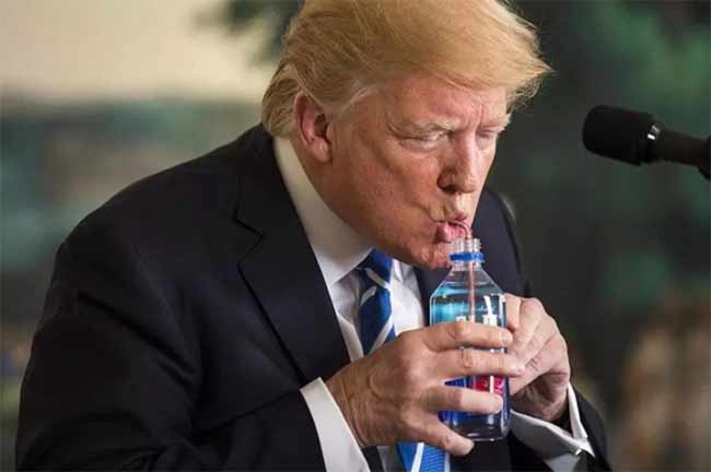 Another viral clip involved a simple everyday action: drinking water. During a speech in 2017, Trump paused and reached for a bottle of water. Instead of picking it up with one hand, he briefly used both hands to lift the bottle.